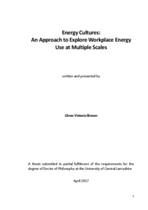 Brown, Llinos (2017) Energy Cultures: An Approach to Explore Workplace Energy Use at Multiple Scales. Doctoral thesis, University of Central Lancashire.