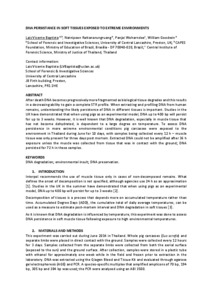 Baptista, Lais Vicente orcid iconORCID: 0000-0003-0410-7895, Rattanarungruang, Natnipoon, Woharndee, Panjai and Goodwin, William H orcid iconORCID: 0000-0002-3632-3552 (2015) DNA persistance in soft tissues exposed to extreme environments. Forensic Science International Genetics Supplement Series, 5 . e216-e217. ISSN 1875-1768