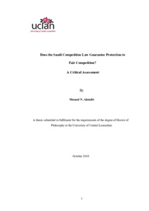 This research aims to investigate the Saudi Competition Law (2004) and its regulations and rules. It investigates whether the Saudi Competition Law guarantees protection for fair competition. . It looks into the defects in the Saudi Competition Law and its enforcement. The research also explores reforms needed to improve the Saudi Competition Law and how such reforms can be achieved. The study employs two broad approaches to answer the research questions: the black letter and socio-legal models; and two particular methods (as well as analysis of legal material and existing related literature), i.e, interviews, and two case studies in communications and civil aviation sectors.