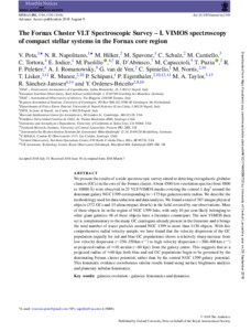 Pota, V, Napolitano, N R, Hilker, M, Spavone, M, Schulz, C, Cantiello, Michele, Tortora, C, Iodice, E, Paolillo, M et al (2018) The Fornax Cluster VLT Spectroscopic Survey. I – VIMOS spectroscopy of compact stellar systems in the Fornax core region. Monthly Notices of the Royal Astronomical Society, 481 (2). pp. 1744-1756. ISSN 0035-8711