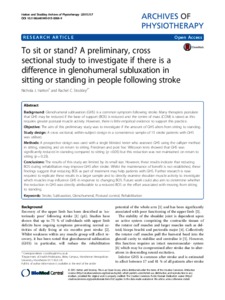 To sit or stand? A preliminary, cross sectional study to investigate if there is a difference in glenohumeral subluxation in sitting or standing in people following stroke.