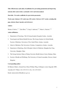 Badve, Monica S, Zhou, Zien, Anderson, Craig and Hackett, Maree orcid iconORCID: 0000-0003-1211-9087 (2018) Effectiveness and Safety of Antibiotics for Preventing Pneumonia and Improving Outcome after Acute Stroke: Systematic Review and Meta-analysis. Journal of Stroke and Cerebrovascular Diseases . ISSN 1052-3057