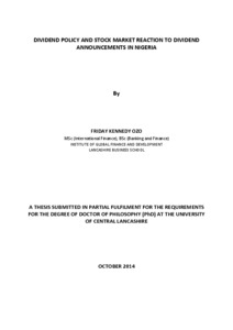 Ozo, Friday Kennedy (2014) Divident policy and stock market reactions to dividend announcements in Nigeria. Doctoral thesis, University of Central Lancashire.
