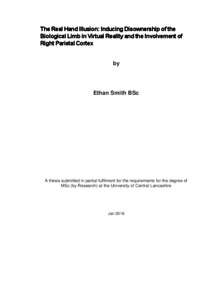 Smith, Ethan (2018) The Real Hand Illusion: Inducing disownership of the biological limb in virtual reality and the involvement of the right parietal cortex. Masters thesis, University of Central Lancashire.