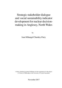 Parry, Ioan orcid iconORCID: 0000-0003-1847-3036 (2017) Strategic stakeholder dialogue and social sustainability indicator development for nuclear decision- making in Anglesey, North Wales. Doctoral thesis, University of Central Lancashire.