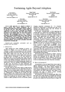 Agile approaches are adopted in industry to improve outcomes from software development, and are increasingly the subject of research studies. However, adoption is not the end of the story. Agile requires on-going change and commitment in order to become sustainable and embedded within teams and organisations. This study explores current perceptions of post-adoptive agility. We asked 50 practitioners ‘what does agile sustainability mean to you?’. Analysis of practitioner comments identified four themes: being completely agile, independent, focused on business value and need, and consistent across time. Post-adoptive agile is an under-researched area, there is inconsistent use of terminology, and there is a gap between practitioners’ and researchers’ perceptions about what is important for sustaining agile.