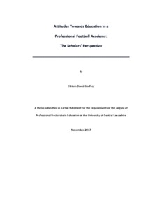 Godfrey, Clint (2017) Attitudes Towards Education in a Professional Football Academy: The Scholars’ Perspective. Doctoral thesis, University of Central Lancashire.