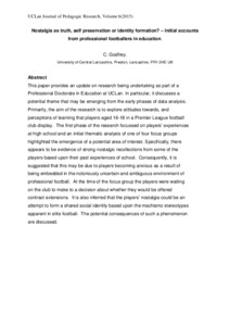 Godfrey, Clint (2015) Nostalgia as truth, self preservation or identity formation? – Initial accounts from professional footballers in education. UCLan Journal of Pedagogic Research, 6 (1). pp. 134-150. ISSN 2048-8815