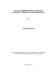 Bosworth, Emma (2017) The role of CHMP2B mutations in astrocytic dysfunction: implications for neurodegeneration. Masters thesis, University of Central Lancashire.