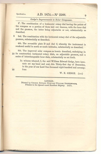 William Edward Gedge (1874) Patent for 'Solar Compasses', page 9. 2588.