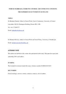 Forced Marriage, Coercive Control, and Conducive Contexts: The Experiences of Women in Scotland.