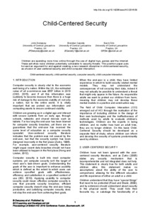 Dempsey, John orcid iconORCID: 0000-0002-3716-096X, Cassidy, Brendan orcid iconORCID: 0000-0003-0756-9657 and Sim, Gavin orcid iconORCID: 0000-0002-9713-9388 (2016) Child-Centered Security. In: 30th International BCS Human Computer Interaction Conference (HCI 2016), 11 - 15 July 2016, Bournemouth University, Poole, UK.