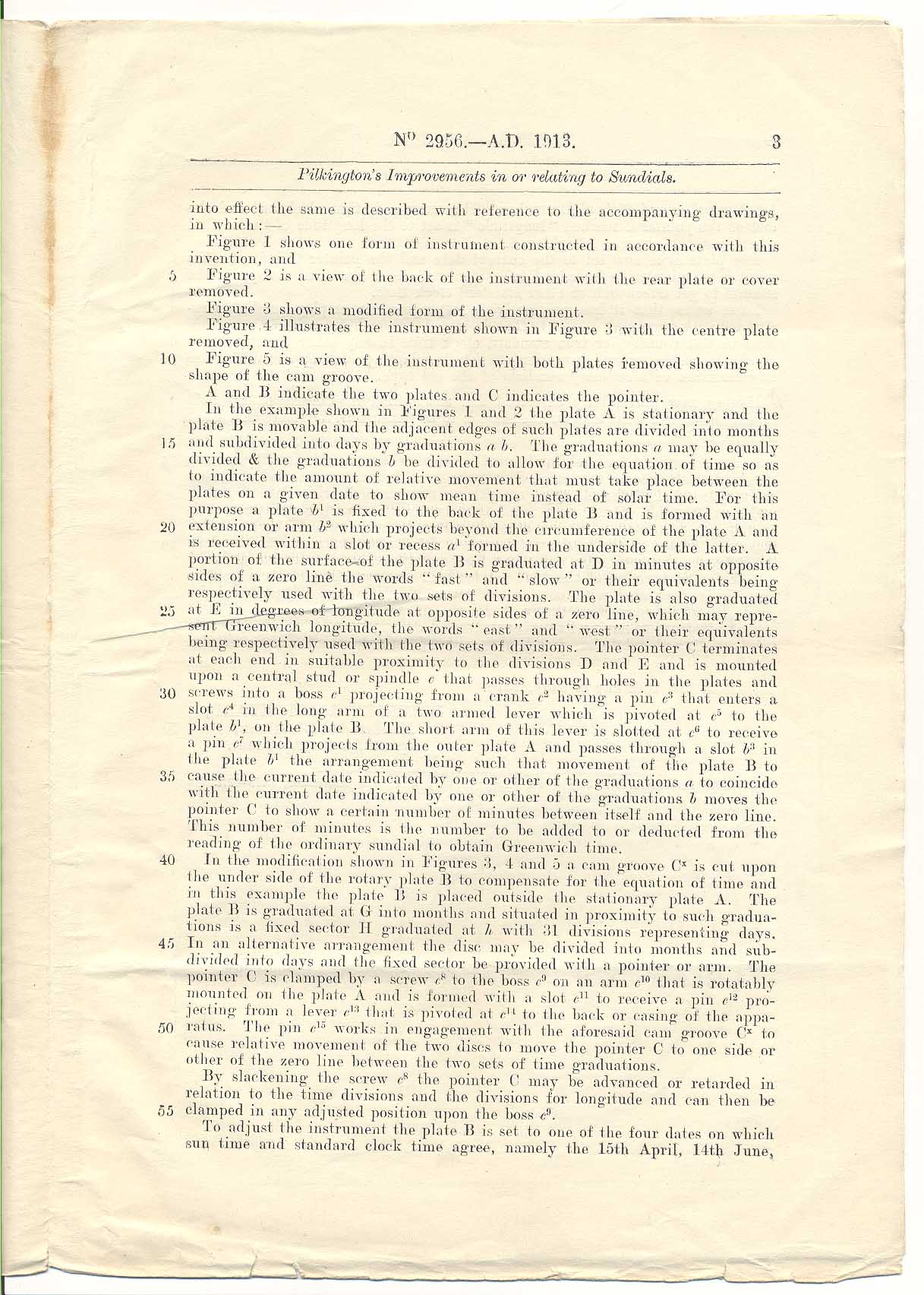William Renard Pilkington (1913) Patent for 'Pilkington’s Mechanical Equation Table', page 3. 2956.