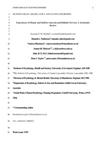 Blythin, Suzanne P. M., Nicholson, Hannah, Macintyre, Vanessa G., Dickson, Joanne M., Fox, John R. E. and Taylor, Peter J. (2020) Experiences of shame and guilt in anorexia and bulimia nervosa: A systematic review. Psychology and Psychotherapy: Theory, Research and Practice, 93 (1). pp. 134-159.