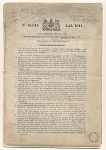 William Renard Pilkington (1911) Patent for 'Pilkington’s Sol Horometer', page 1. 15914.