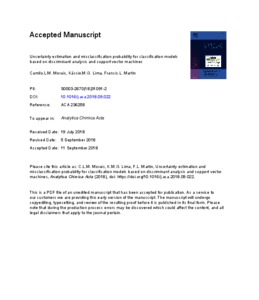 Uncertainty estimation and misclassification probability for classification models based on discriminant analysis and support vector machines.