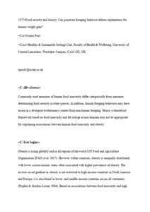 Commonly used measures of human food insecurity differ categorically from measures determining food security in other species. In addition, human foraging behaviors may have arisen in a divergent evolutionary context from nonhuman foraging. Hence, a theoretical framework based on food insecurity and fat storage in nonhumans may not be appropriate for explaining associations between human food insecurity and obesity.