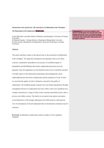 Special issue on the enactment of neoliberalism in the workplace: The degradation of the employment relationship.