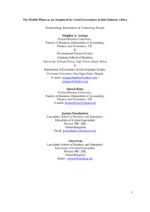 The Mobile Phone as an Argument for Good Governance in Sub-Saharan Africa.