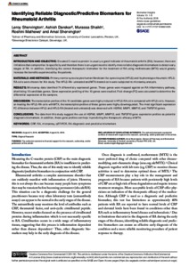 Identifying Reliable Diagnostic/Predictive Biomarkers for Rheumatoid Arthritis.
