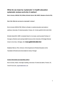 What do we mean by ‘systematic’ in health education systematic reviews and why it matters!