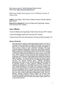 Much has now been written on student participation at school. Yet a lack of conceptual clarity, contestation over purpose and benefits, and uncertainty about how to culturally embed and effectively facilitate participation in school contexts continue to pose considerable challenges. This article reports the qualitative findings from a large‐scale, mixed‐method study that sought to explore how participation is perceived and practised in schools. The qualitative phase involved students from Years 7–10 (n = 177) and staff (n = 32) across 10 government and Catholic secondary schools in New South Wales (NSW), Australia. The data demonstrate that considerable efforts are being made in NSW schools to expand opportunities through which students might ‘participate’, with these explored across three key arenas of school life: the classroom; co‐curricular activities, including formal participatory structures; and informal relational spaces. Although participatory opportunities were largely ad hoc and often dependent upon the approach of individual teachers or school initiatives, differing enactments of childhood and adulthood were identifiable between the three arenas, along with varying expectations in this regard. The classroom emerged as a positive arena at present, and one in which adult–child relations are beginning to become reconfigured. The co‐curricular arena was much more contested, with the breadth of potential participatory opportunities perhaps distracting from the need to address underlying intergenerational issues. However, informal relational encounters between students and teachers were becoming increasingly egalitarian, and these offer scope for creating the cultural preconditions such that student participation might expand more evenly across school life.