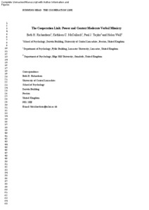Richardson, Beth Helen orcid iconORCID: 0000-0001-8738-9925, McKulloch, Kathleen, Taylor, Paul J and Wall, Helen J (2019) The Cooperation Link: Power and Context Moderate Verbal Mimicry. Journal of Experimental Psychology: Applied, 25 (1). pp. 62-76. ISSN 1076-898X