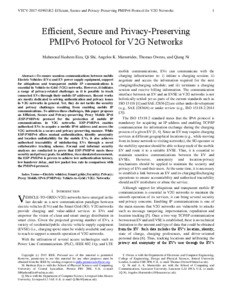 Hashem Eiza, Mahmoud orcid iconORCID: 0000-0001-9114-8577, Shi, Qi, Marnerides, Angelos K., Owen, Thomas and Ni, Qiang (2018) Efficient, Secure and Privacy-Preserving PMIPv6 Protocol for V2G Networks. IEEE Transactions on Vehicular Technology, 68 (1). pp. 19-33. ISSN 0018-9545