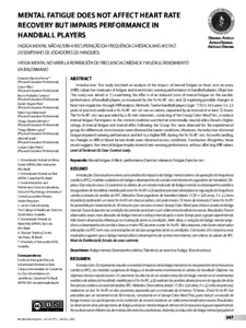 Mental fatigue does not affect heart rate recovery but impairs performance in handball players.