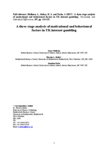 A three stage analysis of motivational and behavioural factors in UK internet gambling.