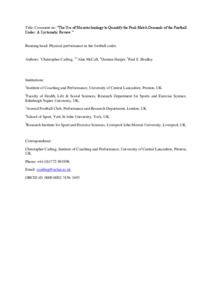 Comment on: “The Use of Microtechnology to Quantify the Peak Match Demands of the Football Codes: A Systematic Review”.