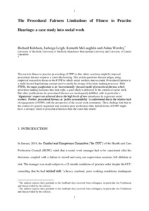 The Procedural Fairness Limitations of Fitness to Practise Hearings: a case study into social work.