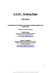 The Mobile Phone in the Diffusion of Knowledge for Institutional Quality in Sub-Saharan Africa.