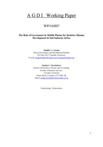 The role of governance in mobile phones for inclusive human development in Sub-Saharan Africa.