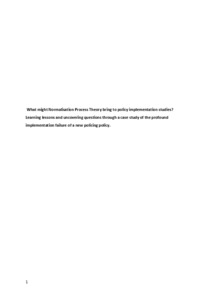 More broadly, NPT helped reveal practices intersecting top‐down and bottom‐up implementation theory. The paper concludes by asking how NPT and theories of street‐level bureaucracy might be better used in tandem and, particularly, how this might help explorations of policy implementation where human actors are joined by technological actors in interpreting and making policy in vivo.