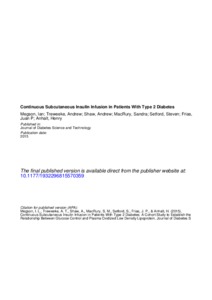 Megson, IL, Treweeke, AT, Shaw, Andrew, MacRury, SM, Setford, S, Frias, JP and Anhalt, H (2015) Continuous Subcutaneous Insulin Infusion in Patients With Type 2 Diabetes A Cohort Study to Establish the Relationship Between Glucose Control and Plasma Oxidized Low Density Lipoprotein. Journal of Diabetes Science and Technology, 9 (3). pp. 573-580.