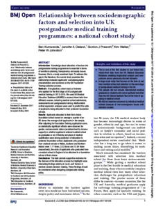 Relationship between sociodemographic factors and selection into UK postgraduate medical training programmes: a national cohort study.