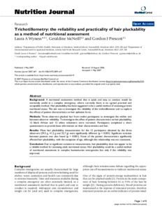 Background A nutritional assessment method that is quick and easy to conduct would be extremely useful in a complex emergency, where currently there is no agreed practical and acceptable method. Hair pluckability has been suggested to be a useful method of assessing protein nutritional status. The aim was to investigate the reliability of the trichotillometer and to explore the effects of patient characteristics on hair epilation force.MethodsThree observers plucked hair from twelve participants to investigate the within- and between-observer reliability. To investigate the effect of patient characteristics on hair pluckability, 12 black African and 12 white volunteers were recruited. Participants completed a short questionnaire to provide basic information on their characteristics and hair.ResultsMean hair pluckability measurements for the 12 participants obtained by the three observers (39.5 g, 41.2 g and 32.7 g) were significantly different (p < 0.001). Significant variation between patients was also found (p < 0.001). None of the patient characteristics significantly affected hair pluckability, with the exception of age, although this relationship was not consistent.ConclusionDue to significant variation in measurements, hair pluckability does not appear to be a reliable method for assessing adult nutritional status. Hair pluckability could be a useful method of nutritional assessment in complex humanitarian emergencies but only if the reliability was improved.BackgroundA nutritional assessment method that is quick and easy to conduct would be extremely useful in a complex emergency, where currently there is no agreed practical and acceptable method. Hair pluckability has been suggested to be a useful method of assessing protein nutritional status. The aim was to investigate the reliability of the trichotillometer and to explore the effects of patient characteristics on hair epilation force.MethodsThree observers plucked hair from twelve participants to investigate the within- and between-observer reliability. To investigate the effect of patient characteristics on hair pluckability, 12 black African and 12 white volunteers were recruited. Participants completed a short questionnaire to provide basic information on their characteristics and hair.ResultsMean hair pluckability measurements for the 12 participants obtained by the three observers (39.5 g, 41.2 g and 32.7 g) were significantly different (p < 0.001). Significant variation between patients was also found (p < 0.001). None of the patient characteristics significantly affected hair pluckability, with the exception of age, although this relationship was not consistent.ConclusionDue to significant variation in measurements, hair pluckability does not appear to be a reliable method for assessing adult nutritional status. Hair pluckability could be a useful method of nutritional assessment in complex humanitarian emergencies but only if the reliability was improved.