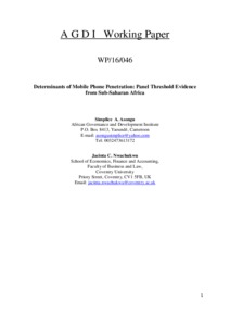 Determinants of Mobile Phone Penetration: Panel Threshold Evidence from Sub-Saharan Africa.