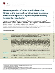 Whittington, HJ, Ostrowski, PJ, McAndrew, DJ, Cao, F, Shaw, Andrew, Eykyn, TR, Lake, HA, Tyler, J, Schneider, JE et al (2018) Over-expression of mitochondrial creatine kinase in the murine heart improves functional recovery and protects against injury following ischaemia–reperfusion. Cardiovascular Research, 114 (6). pp. 858-869. ISSN 0008-6363