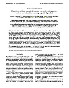 Match internal load in youth elite soccer players is period, playing position and intermittent running capacity dependent.