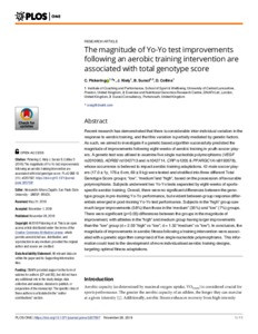The magnitude of Yo-Yo test improvements following an aerobic training intervention are associated with total genotype score.