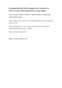 Developing individuals whilst managing teams: perspectives of under 21 coaches within English Premier League football.