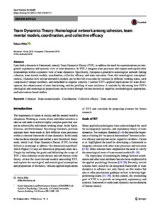 Team Dynamics Theory: Nomological network among cohesion, team mental models, coordination, and collective efficacy.