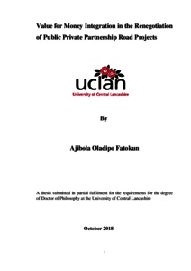 Fatokun, Ajibola Oladipo (2018) Value for Money Integration in the Renegotiation of Public Private Partnership Road Projects. Doctoral thesis, University of Central Lancashire.