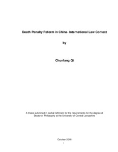 Qi, Chunfang (2018) Death Penalty Reform in China- International Law Context. Doctoral thesis, University of Central Lancashire.