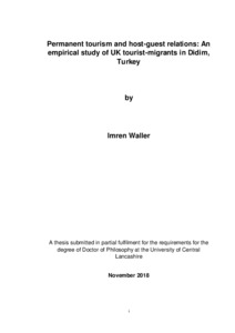 More specifically, this thesis sets out to examine critically the relationship between the host community and tourist-migrants, referred to in this study as permanent tourists, in Turkey. In order to achieve this purpose, the research seeks to identify and elicit the views of permanent tourists in Turkey and explore the extent of their engagement with the host society and culture in Turkey. At the same time, not only does it develop an understanding of the general characteristics of those purchasing (second) homes in Turkey (i.e. space-time characteristics, nationality and motivations), but also it critically appraises the social, cultural and economic impacts of international (specifically British) tourists buying property in Turkey, as well as considering their interactions with the local Turkish community and the respective impacts of the interactions on both the local (‘host’) and permanent tourist (‘guest’) communities.