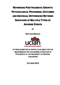 This thesis examines the claim that people can report positive changes following adverse experiences, in a phenomenon known as posttraumatic growth (PTG). Existing literature has advanced knowledge of factors related to PTG, although the applicability of existing theories to explain PTG in survivors of multiple adverse events is unclear. The extent to which PTG is related to event characteristics and posttraumatic stress is ambiguous. In addition, factors associated with long-term PTG change are poorly understood, and there are concerns that PTG may not always reflect positive improvements in well-being. Adopting a mixed-method approach across four studies, this thesis investigated the psychological processes implicated in PTG development, beginning with the characteristics of the adverse event, followed by attempts to understand the experience, and concluding with longer-term PTG outcomes. Study 1 addressed a gap in the literature by examining the extent to which the type, frequency and timing of adverse events were associated with PTG in 268 survivors of multiple and wide-ranging events. It was found that while the type, frequency and timing of adverse events were unrelated to growth, event characteristics shaped emotional responses to the event which were conducive of PTG. Study 2 explored these individual differences in PTG outcomes using semi-structured interviews with 26 people exposed to cumulative adversity from Study 1. Findings provided insight into the psychological factors that facilitate or inhibit PTG, drawing attention to the social context in which growth can occur and emphasising the key role of cognitive processes. Study 3 drew upon key cognitive themes from Study 2 to develop a model to explain relationships between cognitive processing variables not accounted for in existing PTG frameworks in 250 survivors of multiple types of adverse events to report growth and distress. Finally, Study 4 assessed the factors that influence PTG trajectories over an 18-month period using the 268 participants from studies 1 to 3. Intrusive thoughts were the strongest predictor of the average growth trajectory, regardless of the type, frequency, or experience of subsequent events. Four distinct PTG trajectories were revealed that were influenced by a range of psychosocial variables that promoted positive well-being. Growth reports also appeared to serve as a coping strategy. The unique contributions of this thesis have implications for understanding the nature and process of PTG. First, existing PTG models require further revision and expansion to accommodate individual differences. Second, event characteristics can indirectly influence growth through coping, cognitive and social factors that allow people to succumb or thrive after cumulative adverse events. Third, growth is accompanied by distress and vice-versa. Fourth, growth may reflect a coping strategy to minimise distress and thus not reflect actual change, yet also co-exist alongside enhanced psychological functioning in other cases. Finally, PTG is not always consistent or stable over time as previously thought, and can serve different psychological functions. More mixed-method and longitudinal investigations are needed to advance the study of PTG so that firm recommendations can be made to inform clinical practice.