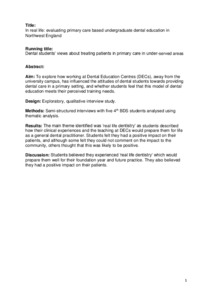 In real life: evaluating primary care based undergraduate dental education in Northwest England.