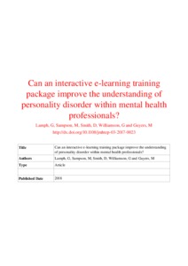 Can an interactive e-learning training package improve the understanding of Personality Disorder within mental health professionals?
